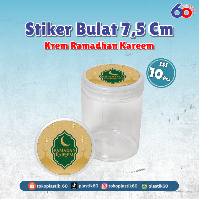 Stiker Bulat 7,5 cm Krem Ramadhan Kareem (10 pcs)