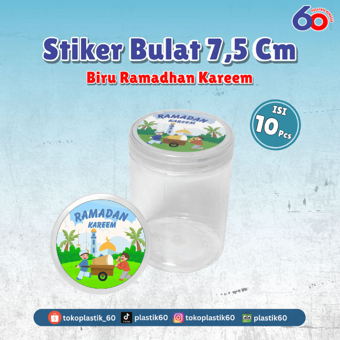 Stiker Bulat 7,5 cm Biru Ramadhan Kareem (10 pcs)