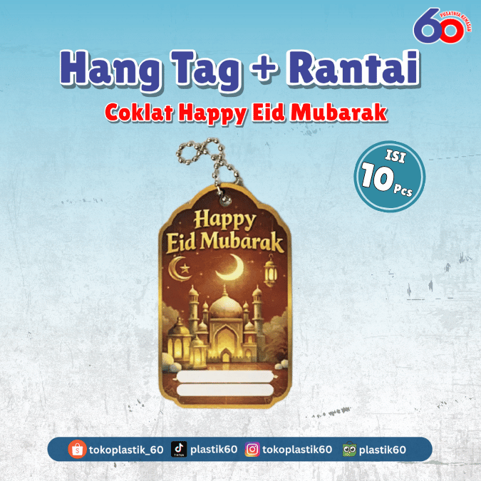 Hang Tag+Rantai Coklat Happy Eid Mubarak (10 pcs)